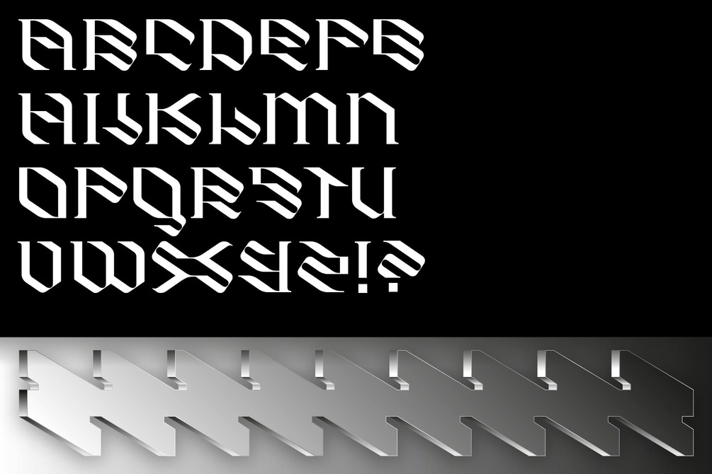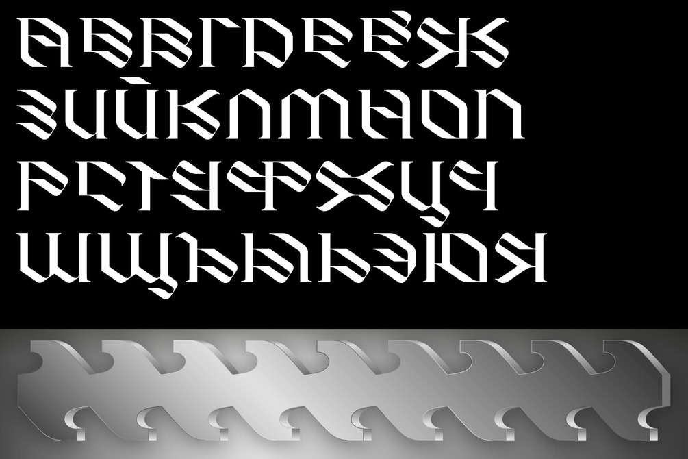 Eskos Display — when creating a font, the only setting was "to make a font from diagonals alone". Here's what happened. To make the font look uniform in optical weight, some strokes of the letters are bent, filling the white space. The whole font connects the curves and the transfusion of the shape from thick diagonals to thin horizontals. Yes, the font may not be so easy to read, but what a beautiful pattern)