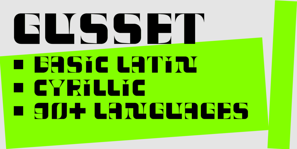 Gusset is a large, active and strange font. It looks like a homemade construction for something that is not clear. We can say that this is a modular font, it is based only on thick strokes and thin, sharp inserts. Thanks to this, the text texture is very uniform. The font is very contrasting, because of this there is a sense of movement, thick strokes or thin strokes constantly come to the fore.